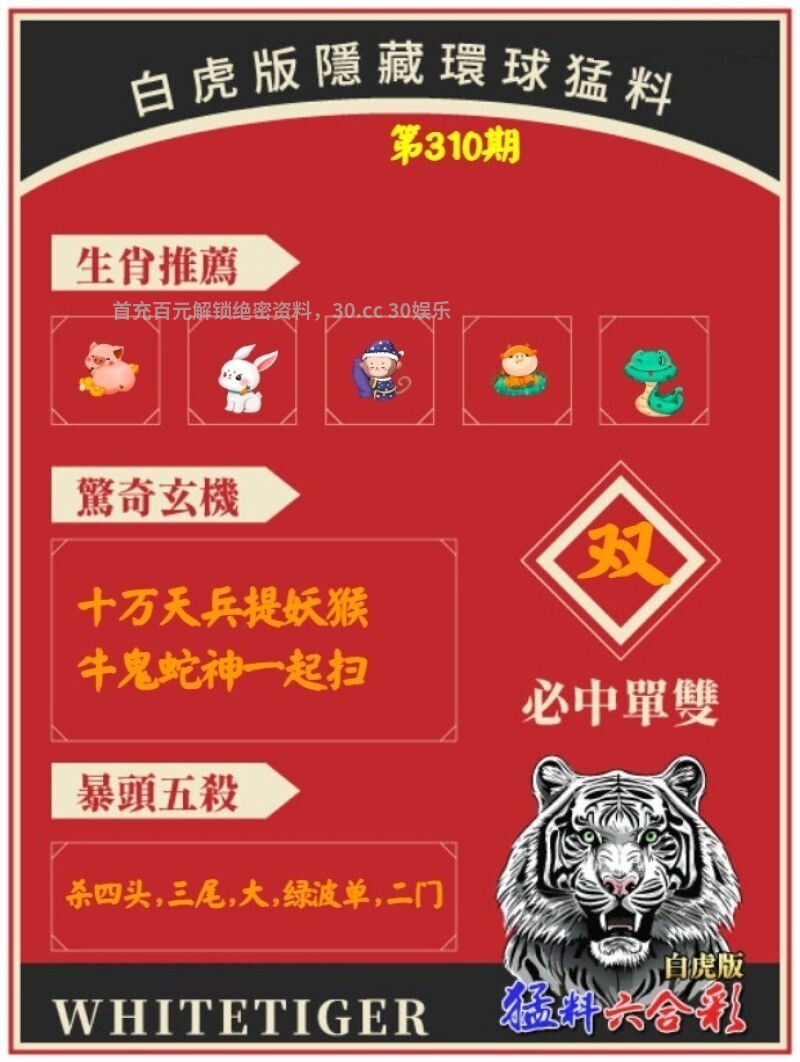 | 310期:单双中特▷单单单◁开:虎16错 |
